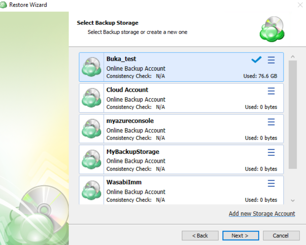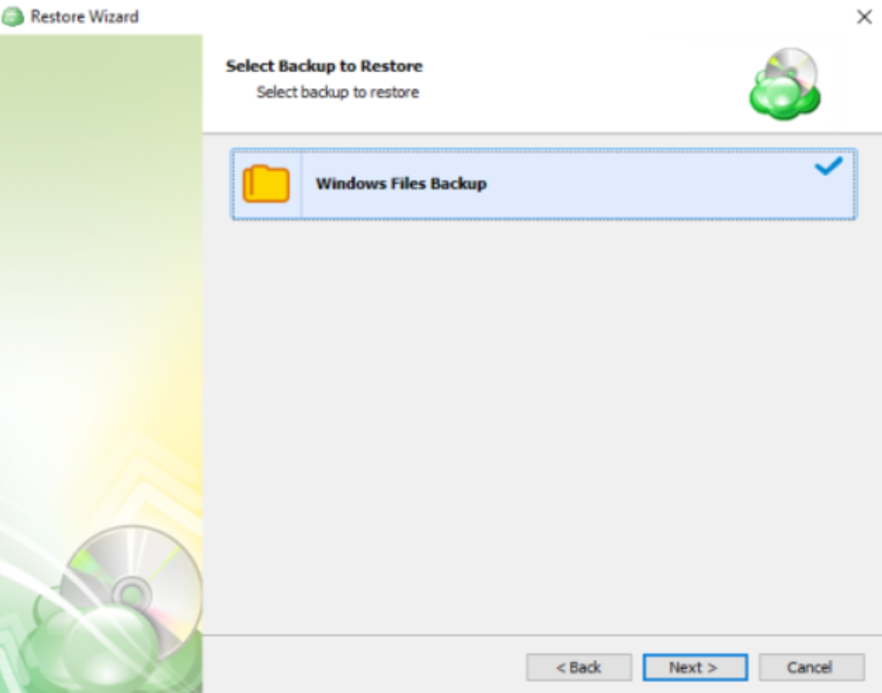 Con el tipo correcto de restauración seleccionado, la aplicación generará una lista de planes de backup disponibles.